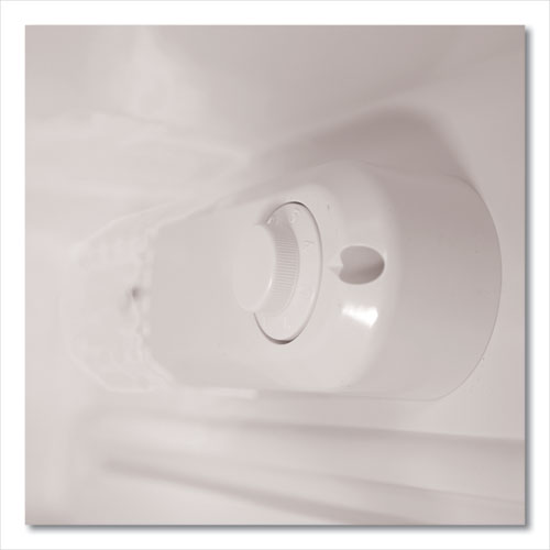 Convenient miniature refrigerator with slide-out glass shelves for easy restocking. Plenty of storage, with one full-width and two half-width door storage bins, with gallon-jug storage in lower door bin. It also features storage on the door for up to six cans. Refrigerator comes with an easy to use adjustable thermostat control and automatic defrost. Crisper drawer works to keep veggies fresh. The door is reversible and features a security lock at the bottom for added protection.