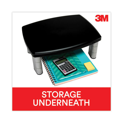 Contemporary design with stacking columns raises monitor from 1" to 5.88" in increments of 1.63" to an ergonomically correct level. Features 11" of storage space underneath to maximize desk space. Great for laptops, printers or monitors up to 80 lbs. No skid base keeps stand in place.