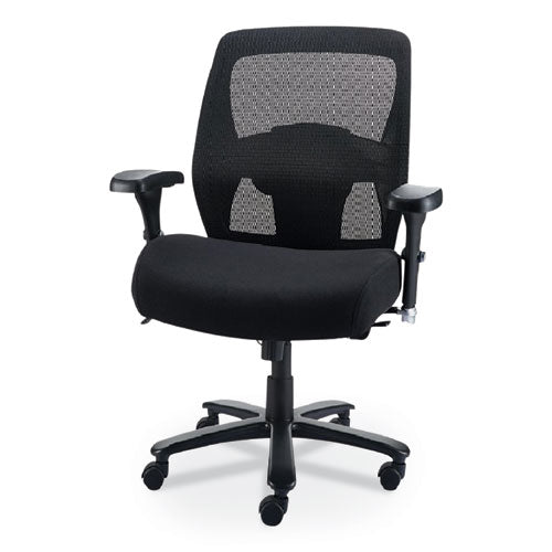 Sit comfortably in a fully adjustable, classic chair that's specifically designed for the big and tall user. Constructed with a thickly padded seat and breathable mesh back. The tilt-adjustable lumbar support gently cradles your back and locks into position for customized comfort. Pneumatic seat height adjustment and width and height-adjustable arms allow you to individualize support for your back, arms, and shoulders. Five casters on a wide, stable base allows mobility.
