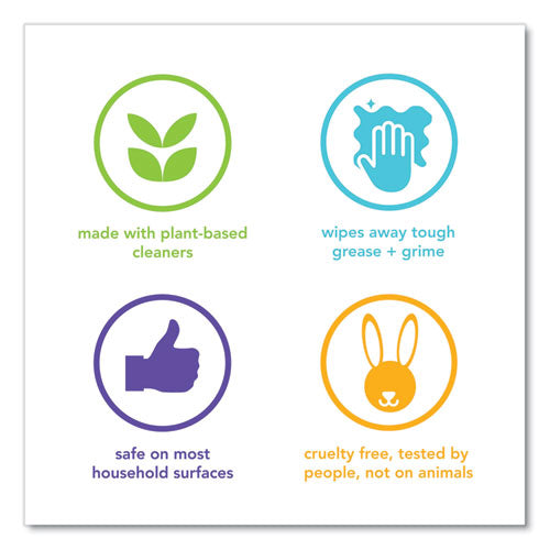 Put the hurt on dirt. Grease and grime don't stand a chance. Not with plant-based cleaning agents on your side. Each wipe, in all its great-smelling glory, packs a powerful cleaning punch, with cleansers derived from corn + coconut. They wisk away spills and splatters with ease, leaving behind the pleasant smell of victory.