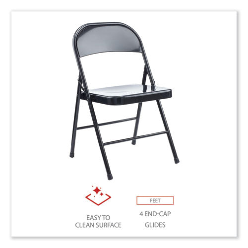 Armless Steel Folding Chair, Supports Up To 275 Lb, Black Seat, Black Back, Black Base, 4/carton