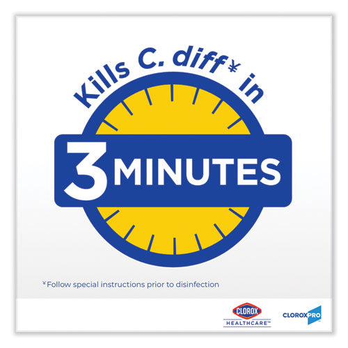 Healthcare professionals trust Clorox Healthcare Bleach Germicidal Wipes to help them overcome infection control challenges in a constantly changing healthcare environment. Clorox Healthcare Bleach Germicidal clinical wipes are ready to use, 1 step cleaner containing a 1:10 bleach dilution to meet CDC and OSHA guidelines for disinfecting surfaces in healthcare settings. Designed for daily disinfection, high-touch surfaces and medical equipment. These wipes are EPA registered to kill a total of 58 microorganisms, including HAI causing bacteria like MRSA and VRE in 30 seconds, outbreak causing viruses such as Influenza A and B viruses, Measles virus and Norovirus in 1 minute and C. difficile spores, TB and fungi in 3 minutes. These wipes kill 99.9999% of C. difficile spores, according to the current EPA recommended testing standard (June 2014). These wipes are engineered minimize residue and leave less visible residue on surfaces vs. competitor bleach wipes. They are formulated with an anticorrosion agent and are compatible with common healthcare surfaces including stainless steel, glass, plastic, porcelain, glazed ceramic, laminated surfaces and vinyl. Intended for use in healthcare settings.
