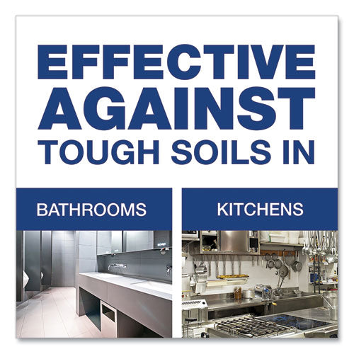 A unique two-in-one all purpose cleaner that combines the cleaning power of heavy-duty detergents with the stain-removal power of bleach. Contains patented cleaning technologies and no abrasives to clean the full range of tough kitchen and restroom soils like tracked-in dirt and scuffmarks. Task areas include customer and employee restroom surfaces, kitchens, the inside and outside of plastic trash containers, and greasy equipment containers.Package Includes: Three 1-gallon jugs per carton