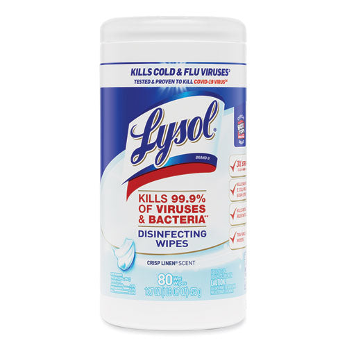 Disinfecting Wipes, 1-ply, 7 X 7.25, Crisp Linen, White, 80 Wipes/canister