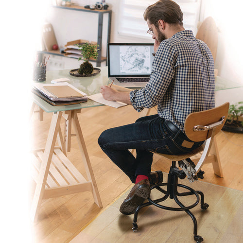 Ecotex® Marlon BioPlus Polycarbonate Chair Mats provide the ultimate in quality, function and durability combined with sustainable material and manufacture. Produced using a "Mass Balancing bio-circular" process with both the resin and chair mat manufacture ISCC certified. (International Sustainability & Carbon Certification). With twice the impact strength of PVC, the perfectly flat and rigid material provides an ergonomic easy glide surface for caster-based chairs, which can reduce leg fatigue and lower back strain. Guaranteed not to crack, curl, discolor or smell. Free from phthalates, PVC and toxic chemicals. An ideal choice for people with allergies. Manufactured using 100% renewable energy, including solar using our solar farm and wind power from our wind-turbine. Contains 89% non-fossil based bio-circular material, such as used cooking oil. 100% recyclable. Marlon BioPlus mats lie perfectly flat from delivery for immediate use.