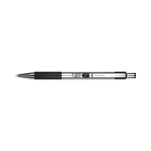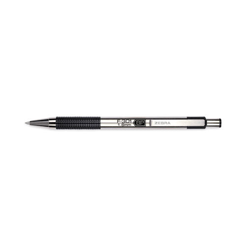 F-301 Ballpoint Pen, Retractable, Bold 1.6 Mm, Black Ink, Stainless Steel/black Barrel, 12/pack