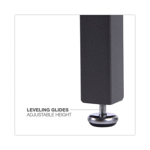 Modern, industrial style desk provides a clean and compact workspace that’s perfect for the home or small office. Use it as a table, writing desk, or computer station to create a productive workspace in smaller areas. Attractive, durable laminate top with squared steel powder coated legs. The cross-stability bar adds style and prevents rocking to ensure a stable feel. Leveling glides included to adjust for uneven floors.