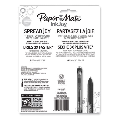 Spread joy (not smears) with Paper Mate® InkJoy™ Gel Pens. With vivid gel ink that dries 3X faster, for reduced smearing, it’s like a party on the page where smudges aren’t invited. Brilliant colors ensure that your writing will be bright and filled with fun. Fully wrapped in a comfort grip, these gel pens have a smooth style that keeps the joy flowing as fast as your thoughts. Individual ink drying times may vary by color.