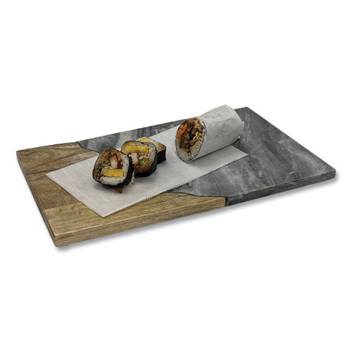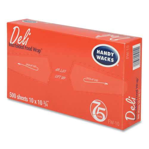 Moisture-resistant dry wax coating keeps paper strong, even when wet. Versatile design allows you to use it as a food wrap, scale sheet, pick-up sheet or basket liner. Pop-up box and interfolded-sheet packaging simplifies dispensing.