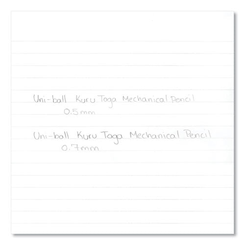 Bid farewell to dull writing and frequent lead breakage with the Kuru Toga Mechanical Pencil from uni-ball. Kuru Toga's self-sharpening lead engine ensures lead is always sharp and precise. This mechanical pencil's fine point delivers crisp and precise lines, so it's useful for a wide variety of drawing and writing tasks, including architectural drafting, sketching or taking down notes. Extra-durable diamond-infused lead creates dark, crisp lines allowing for more intricate writing while reducing lead breakage. Reusable and refillable. The pencil comes with replaceable erasers to clean up any mistakes. Grab the Kuru Toga mechanical pencil and be ready for whatever writing or drawing needs come your way.Package Includes: (1) Tube of (10) 0.5 mm HB (#2) Leads; (2) Refill Erasers