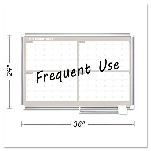 Magnetic Dry Erase Calendar Board, Four Month, 36 X 24, White Surface, Silver Aluminum Frame