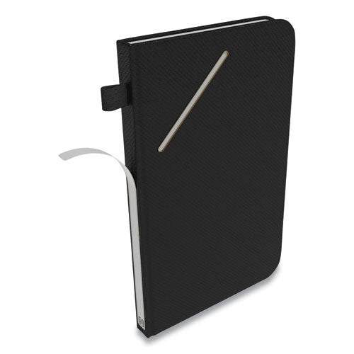 Write down plans and client notes in this gray hardcover journal. The narrow-ruled format with to-do lists and sketch pages meets a variety of note-taking needs, while the card slot holds your ID badge and business cards. Features an inside front cover pocket to keep important documents, and the pen loop ensures you can make quick updates.