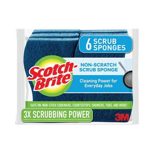 Non-scratch Multi-purpose Scrub Sponge, 4.4 X 2.6, 0.8" Thick, Blue, 6/pack
