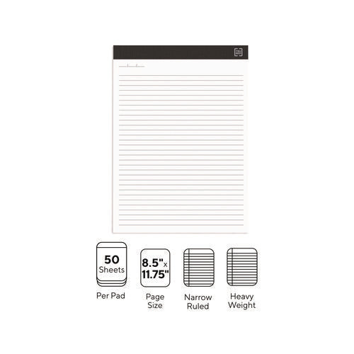 Notepads, Narrow Rule, 50 White 8.5 X 11.75 Sheets, 6/pack