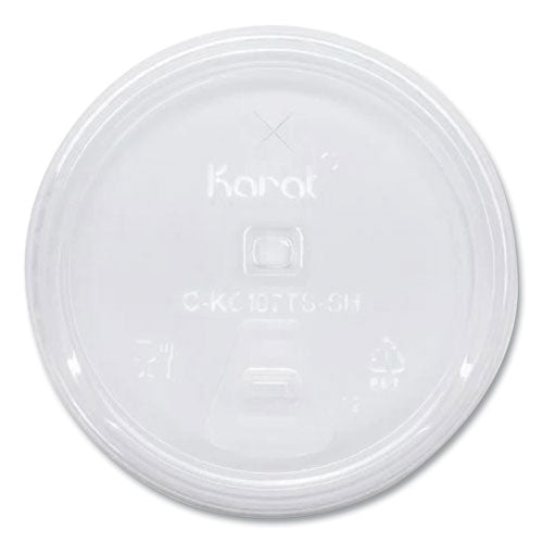Karat® PET lids are durable, high clarity, and crack resistant. They are also recyclable and BPA free. Compatible with Karat® Cold Cups.