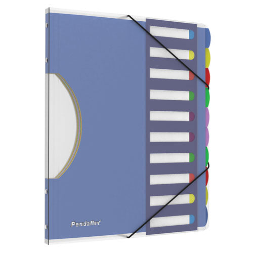 Pilesmart Project Sorters, 0.75" Expansion, 10 Sections, Elastic Cord Closure, 1/10-cut Tabs, Letter Size, Blue