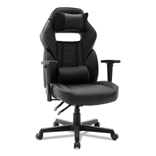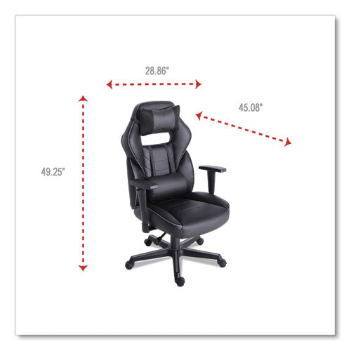 Whether you’re getting your game on, knocking out some homework, or leading a team from your home office you’ll be doing so in style and comfort with this Alera Gaming Chair. Inspired by top racing car seats, this chair delivers ultra-comfort and sleek styling. The 135 degree reclining seat allows you to lie back and take a break from the action. Dial in your perfect comfort level with such features as height adjust, tilt tension, tilt lock, adjustable arms and removable head and lumbar pillows. Score a quick win with the easy to assemble Alera Gaming Chair.