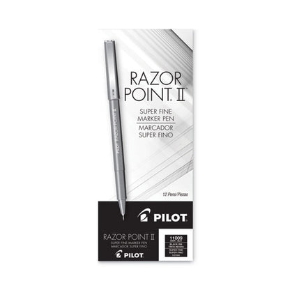 Razor Point Ii Super Fine Line Porous Point Pen, Stick, Ultra-fine 0.2 Mm, Black Ink, Black Barrel, Dozen