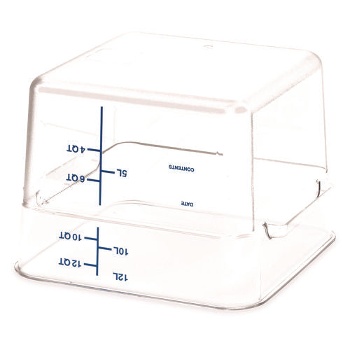 Maximize storage space for a variety of items in Carlisle Squares food storage containers! Tight fitting, color-coded lids (sold separately) encourage organization and reduce cross-contamination. Color-coded liter and quart markings match color-coded lids to ensure a quick and easy match. Keep food organized and separated for sanitary storage.