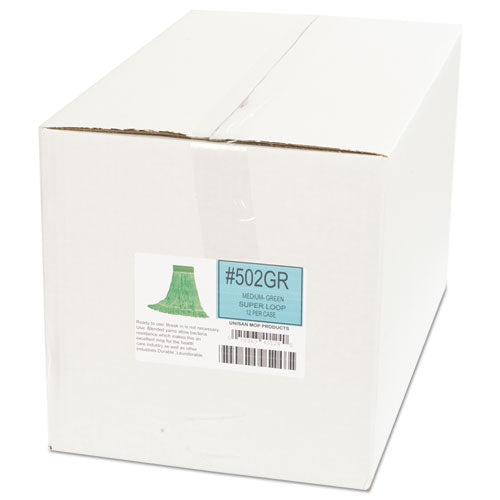 Super Loop Wet Mop Head, Cotton/synthetic Fiber, 5" Headband, Medium Size, Green, 12/carton