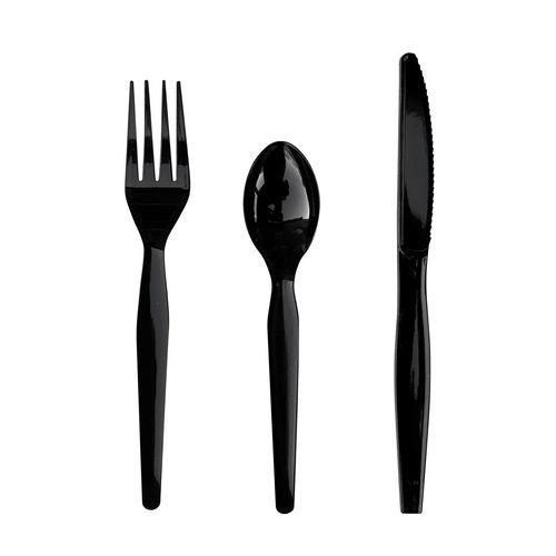 Three-piece Cutlery Kit, Fork/knife/teaspoon, Heavyweight, Black, 250/carton