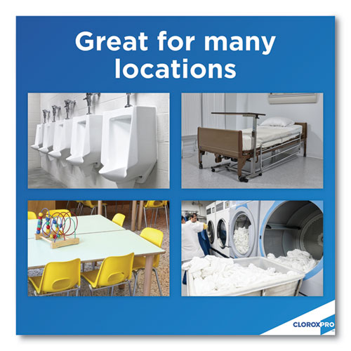 Clorox® Urine Remover for Stains and Odors tackles the toughest urine stains and odors. With the cleaning power of hydrogen peroxide, it quickly breaks down urine to eliminate odors and remove stains. This versatile cleaner is safe to use on most hard and soft surfaces. It is specially formulated for tough-to-clean porous surfaces, like grout, notorious for trapping urine odors. It also handles stains and odors on soft, absorbent surfaces like carpet and mattresses. This urine remover is also great for outdoor concrete, walls and flooring, laundry pre-treatment, pet stains, and bodily fluids removal including feces, blood, and vomit. Ideal for offices, day care centers, schools, hotels, restaurants and other commercial facilities.
