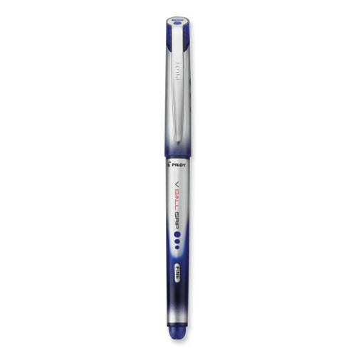 Vball Grip Liquid Ink Roller Ball Pen, Stick, Fine 0.7 Mm, Blue Ink, Blue/silver Barrel, Dozen