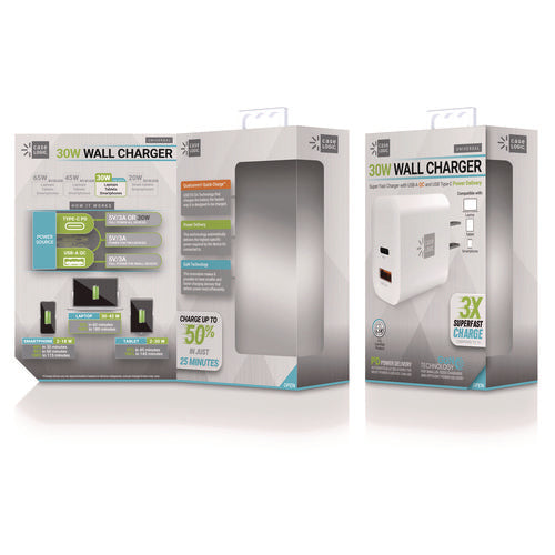 Super-fast charger with USB-A QC and USB Type C Power Delivery. Qualcomm Quick Charge USB charges the battery the fastest way it is designed to be charged. Power Delivery automatically delivers the highest specific power required by the device it is connected to.